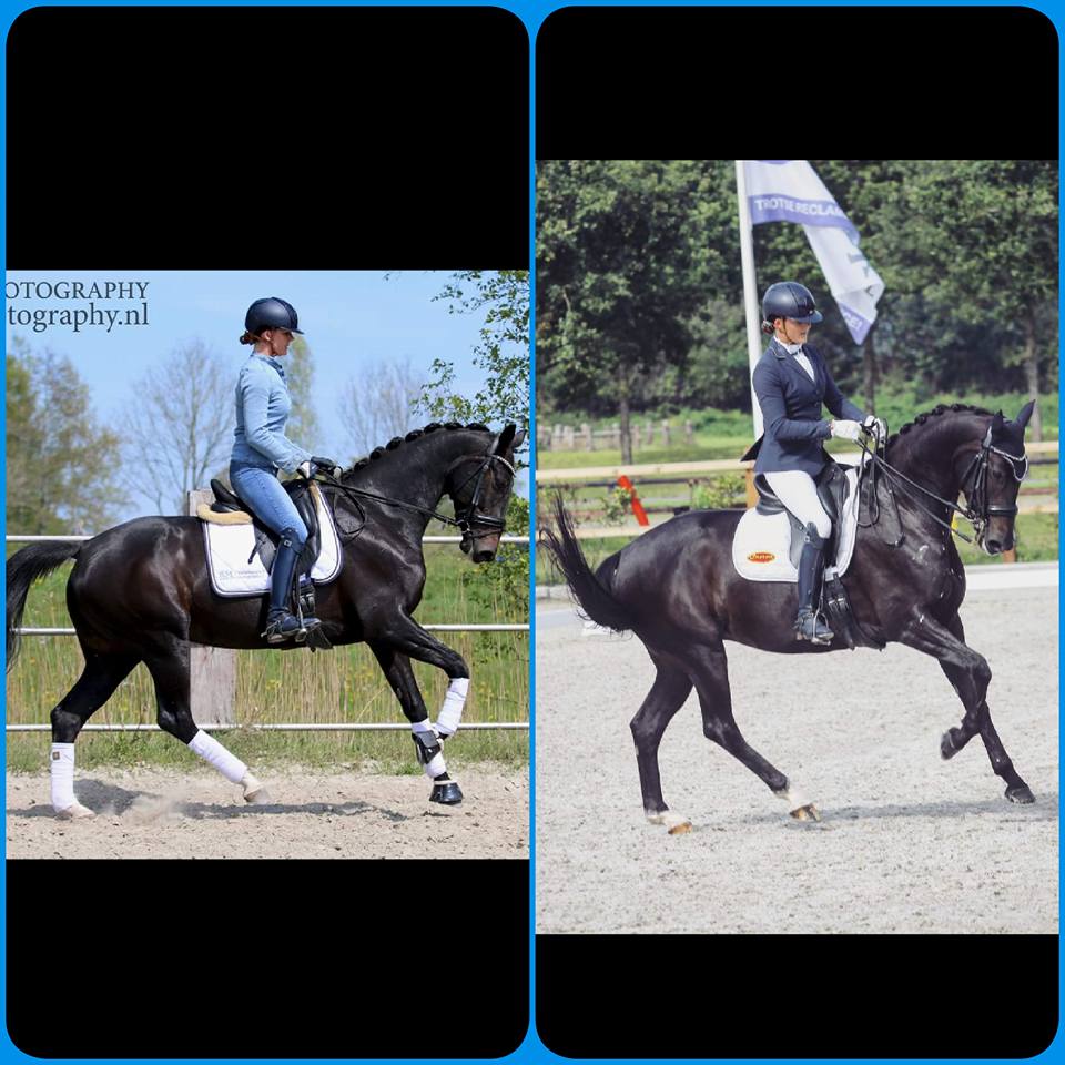 In overleg Ben ik in Mei na uitvoerig overleg begonnen met het voeren van Lifeforce icm Mysolenen E2500 . Mijn paard kwam maar niet uit zijn haren, had chronisch last van zijn maag met dunne mest als gevolg en viel enorm af. Mijn paard loopt 5 dagen in de week op L2 & Z niveau waarbij spieren, gezond gewicht en een vrolijk paard natuurlijk van essentieel belang zijn. We hadden een punt bereikt dat je letterlijk al zijn ribben kon tellen. Er moest NU iets gebeuren. Via bekende kwam ik uit op Paardensupplementen.nl waar de tijd voor me genomen werd om me goed te adviseren en samen te kijken wat te doen. Sceptisch als ik ben heb ik een foto gemaakt voor en na. Mijn knapperd at het vrijwel direct droog over zijn voer. Inmiddels zijn we een dikke maand verder en al zoveel verschil.. minder chagrijnig met aansingelen, zoveel meer vorm en de spieren groeien op het moment als kool! Kortom een heel blij paard en nog een veel blijere eigenaar. Zeg nou zelf.. je wilt niets liever dan dat je maatje goed in zn velletje zit en je echt samen een combinatie kunt zijn. Nogmaals dikke dankjewel voor de fijne begeleiding! Voor ons is dit een blijvende toevoeging aan zijn dagelijks rantsoen!